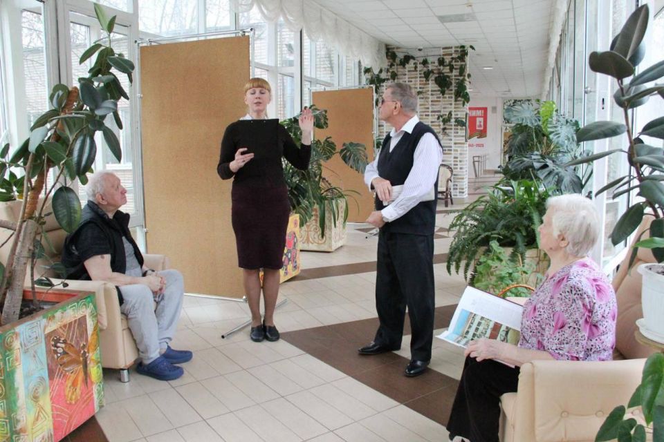 В филиале «Дом ветеранов сцены им. А.А. Яблочкиной» библиотекарь организовала занятие для малых групп участников.